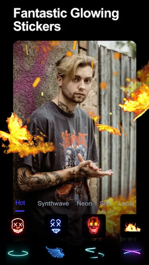 • Powerful toolset - Neon Brushes, Neon Stickers, Glowing Signs, Retro Filters, Transitions and more.