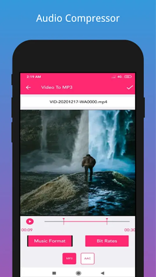 Converts video to mp3 converter tool, audio any video as mp3 audio and save it to your device.