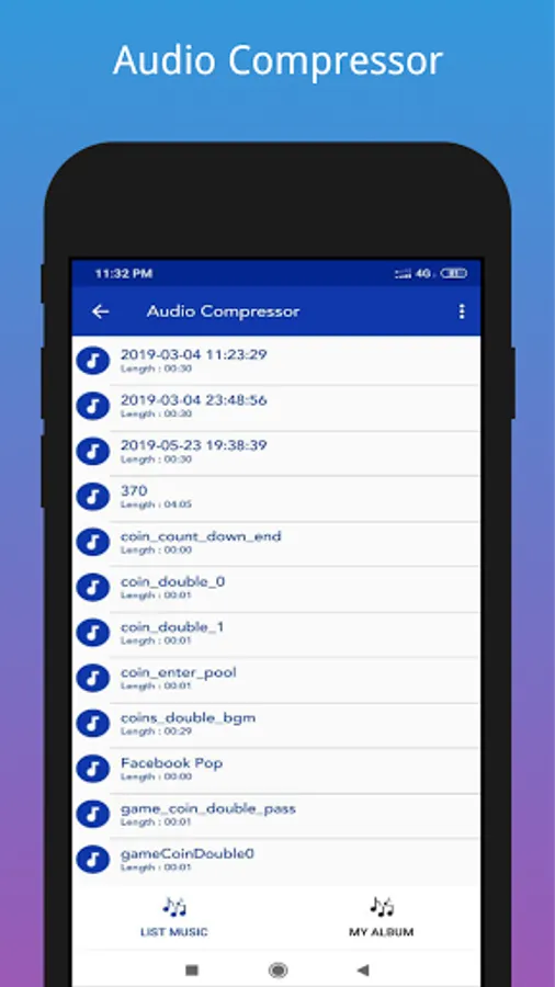 Compress any audio song into 3 different K / Bit such as 64 K / bit, 128 K / bit, 256 K / bit.