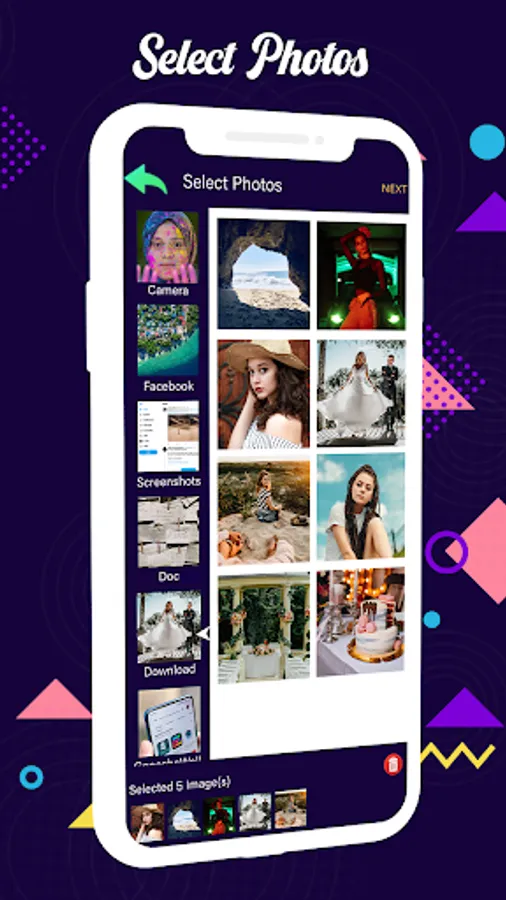 You can select unlimited photos from your gallary or albums as well as we are maintain high quality of your photos with professional artful photo vidoe maker.