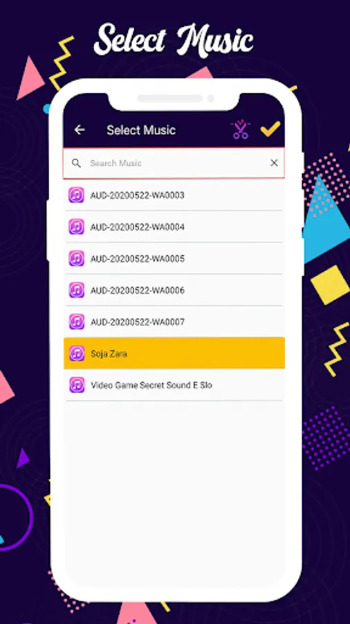 You can select any of the music from your music library as well as you can cut that music and apply on your video easily.