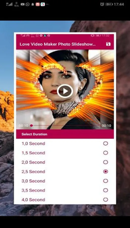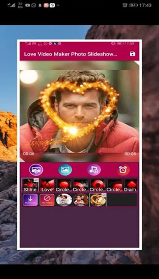 A video clip consisting of a group of pictures of love with music accompanying this video on any mobile, tab, or any modern devices that use the Android system). So that the production of the clip does not require only a few clicks and it will be completely professional, so the images are selected or photographed, the program adopts the method of merging the images and grouping them in the order and the way that suits you with your determination of the time period to display each image and makes you keep wonderful albums, but not only this the program You can choose the appropriate music track for these photos, thus you get a great video and montage without the need for an expert in video montage and design, and then simply share the result with loved ones and friends.