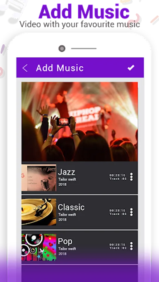 The app provides strains that match every video theme. You can also add your favorite songs and music tracks from the device to make your videos exciting and attractive.