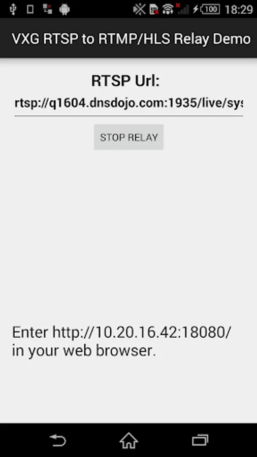 RTSP (or custom source) to RTMP/HLS streaming Relay Demo by VXG.