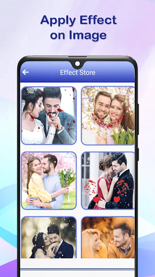 ⇢ Add many effect like heart effect, love effect, pink rose effect, falling heart Effects etc.