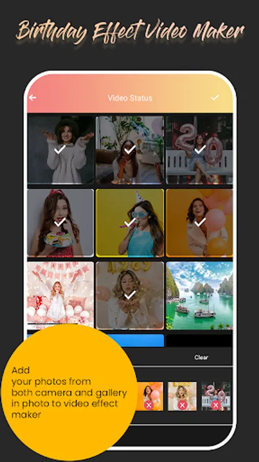 ➩ Make Birthday wishes Story in photo slideshow, Happy Birthday Video Editor With animated effects. Easily you can make filmy style video on the special day using Birthday Effect Video Maker.