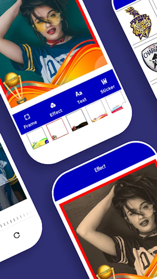 - Edit Photo with All IPL Team Logo, T shirt, Cricket Symbol stickers, add text and by applying Effects on photo.