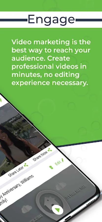 Imagine your parents are having their 50th wedding anniversary, or your best friend just got engaged and you want to create an amazing congratulations video with friends and family from around the globe. You decide who you want to participate and we’ll collect their videos, add music, and combine everything together to create an awesome montage. Our app solves all the problems normally faced when trying to collect or share large video files.