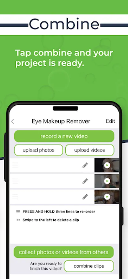 4) When you’re ready tap “COMBINE CLIPS” and the finished montage is ready in minutes.