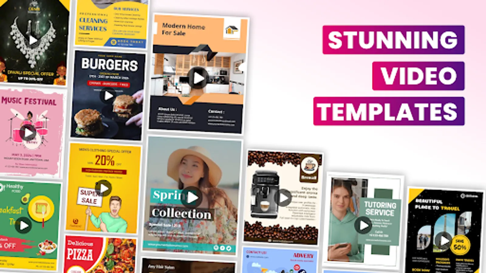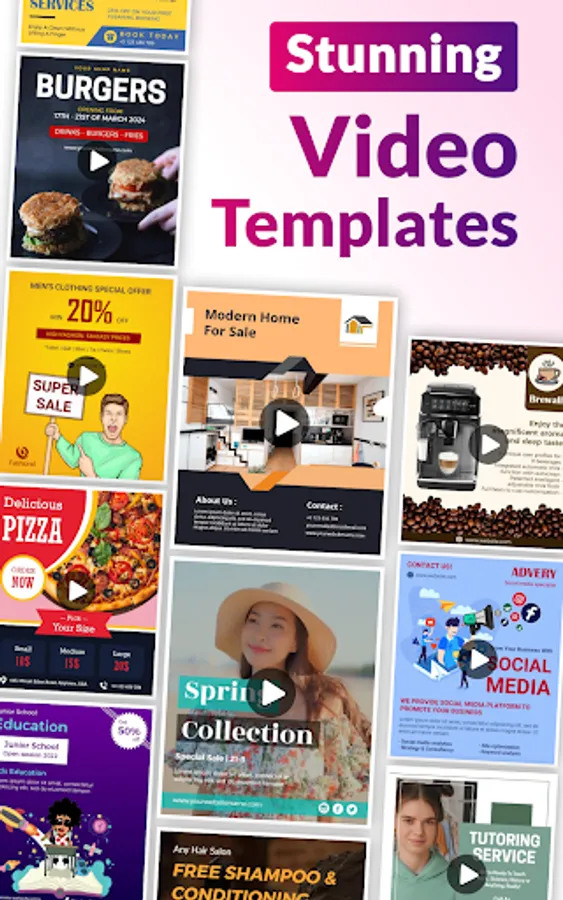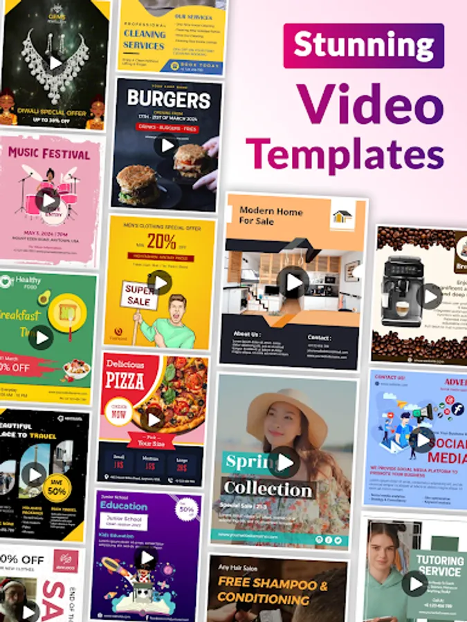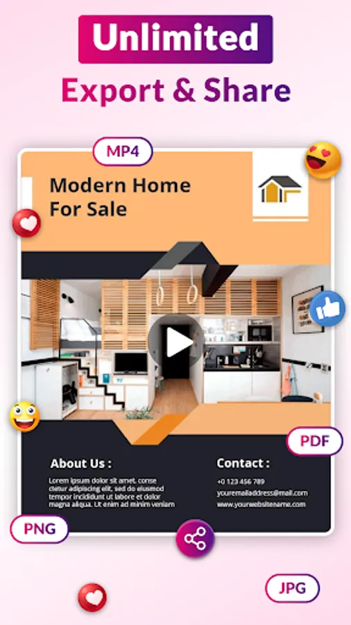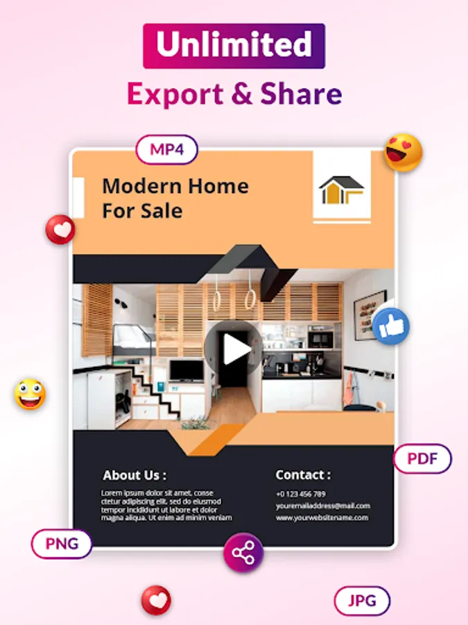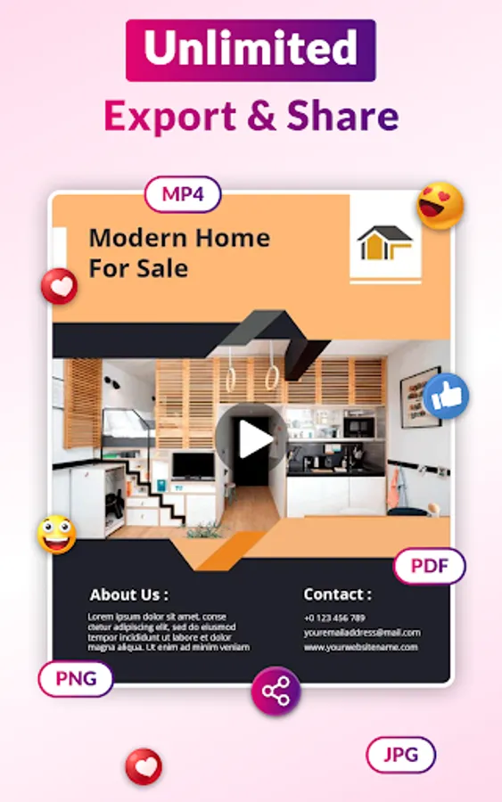 Create your own video ads, promotional flyers, party flyers, birthday flyers, and event flyers with creative video poster templates and flyer designer. Quick & Easy to Use.