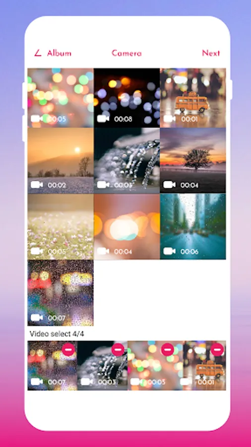 Video collage maker with photo editor and video editor feature as crop, orientation, contrast, saturation, draw on video, picture shapes and sticker for grid videos.