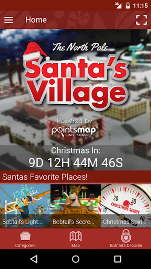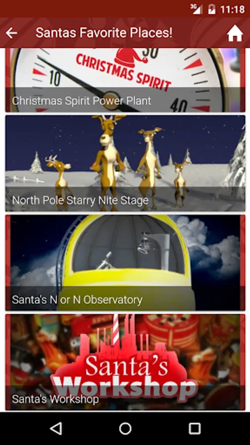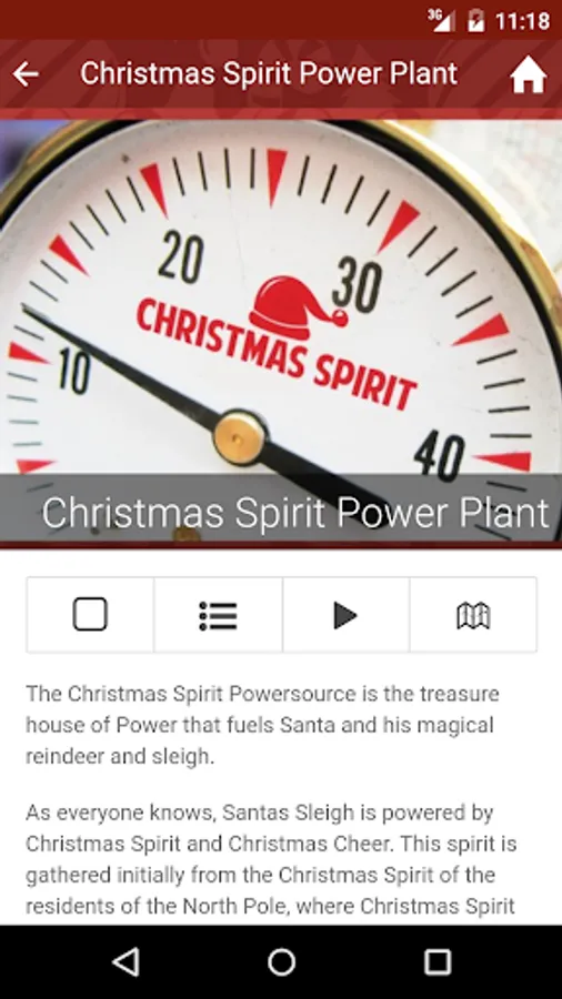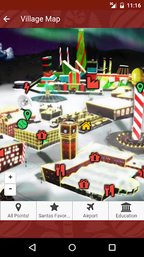 Video Ideas has painstakingly gathered this information and created the Santa's Village App as our Christmas Gift to you! Tap any of the points in Santa's Favorites on the home page or any point in the category listings and explore the point. Tap the map icon and see where it is on a map of Santa's Village. Interesting Points you can explore include: Santa's Naughty or Nice Observatory (where Santa watches everyone to see if they have been good this year), The Candy Factory, The Claus' Mountain Resort, Santa's Workshop, the SnowTrans system, The Christmas Spirit Power Plant and many more.