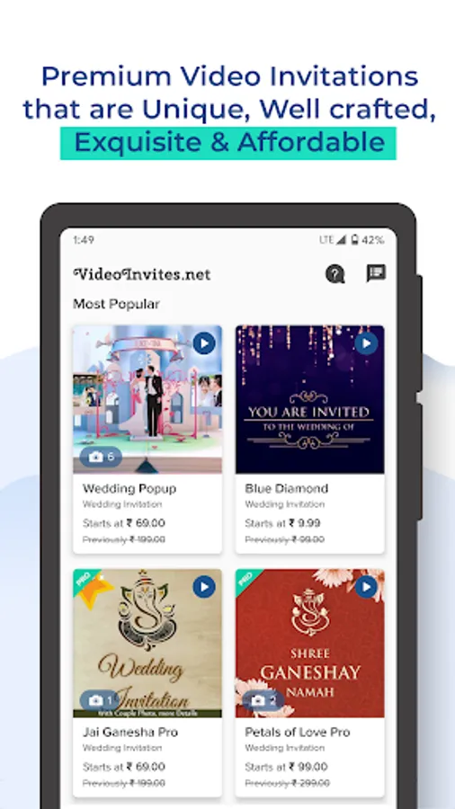 • Video Invitation templates available for all major Events