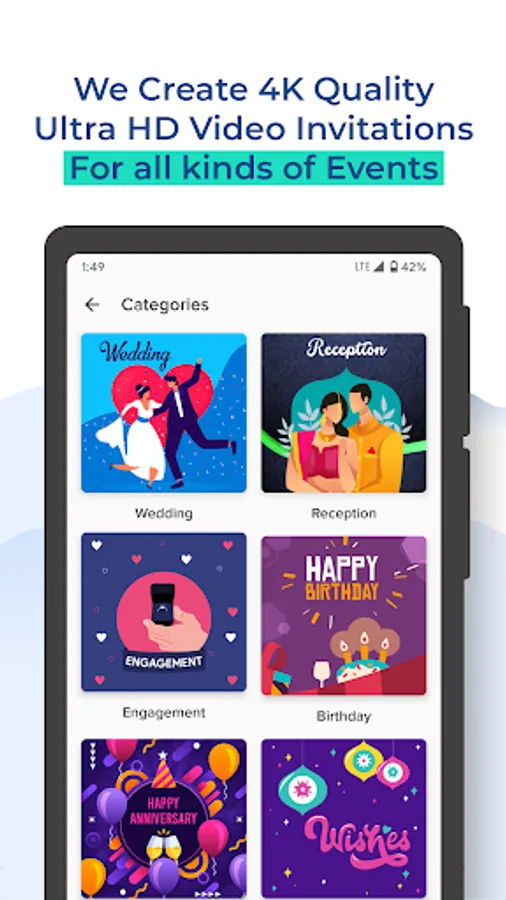 Unlike other Video Makers in the market, we also offer all our Premium Video Invitation designs at Ultra High Definition - 4K Quality