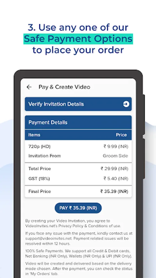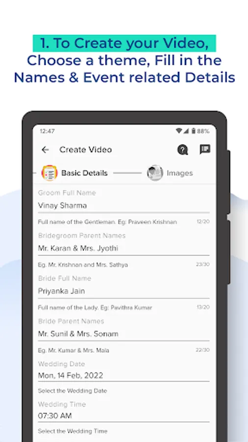 You can do a lot of customizations and personalize your video Invitation. You can edit the text, quotes and messages displayed in your Invitation Video. You can also choose your own photos to be featured in your Video Invitation.