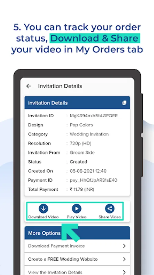 • You can download your copy of your Video Invitation anytime