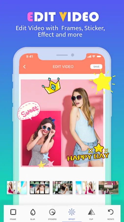 >> Apply stunning color filters to make your video stand out: Vintage, Sepia, Vignette, Gray, Blur and many more