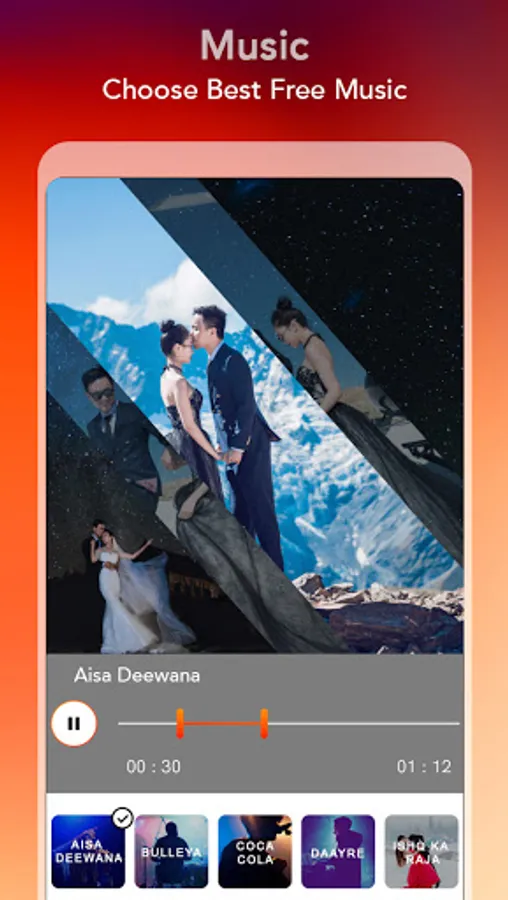 - Add your favorite music or audio to Photo Slideshow with Music or video maker from your music library.