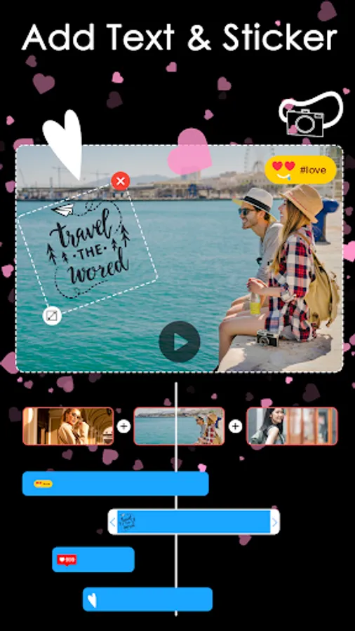 👉 Video maker supports you to add text with interesting transition effects