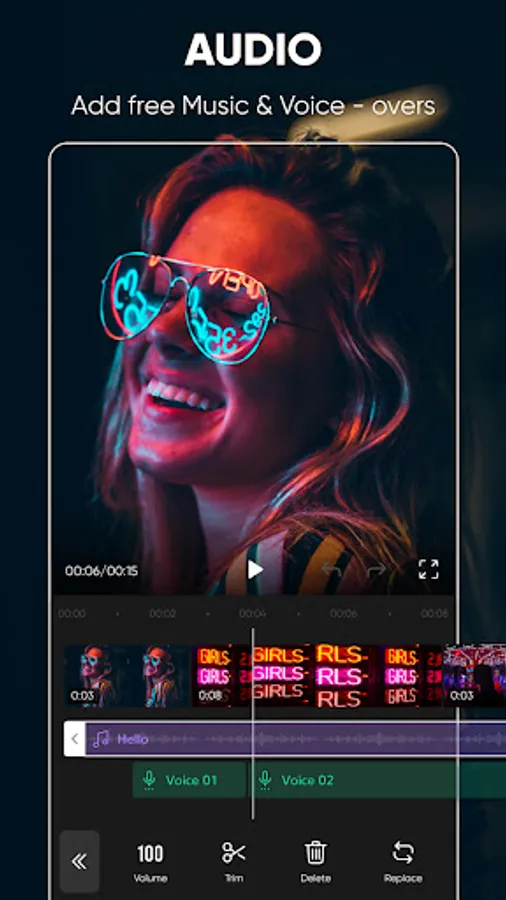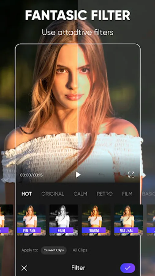 Cool video effect: library with tons of interesting effect and updates continuously. You can choose from glitch effect, fish eye effect, spiral effect and more!