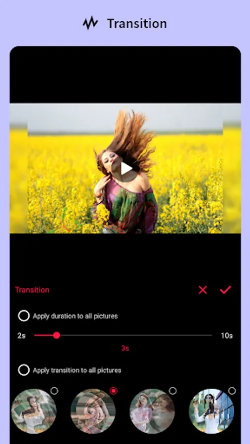 Photo editor & music video also has lots of great transition effects and picture frames to create photo videos. Transition creates great animations between two images. Photo frames with many creative themes suitable for your video. The videos you make from photos and music, photos that make up videos look better with effects and frames.