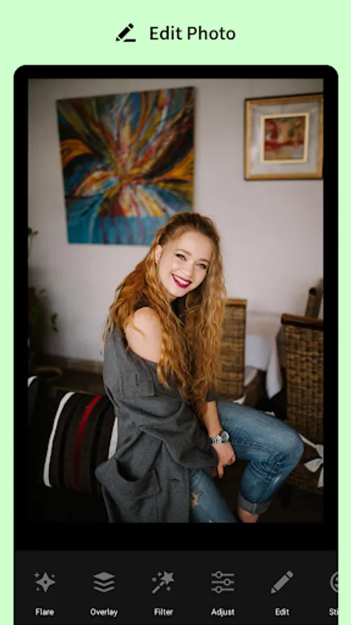 - Best photo editing with tools: Effects, filters, frames, adjustments, brightness, crop, rotate, add text, stickers ... All in one to make your photos more gorgeous.