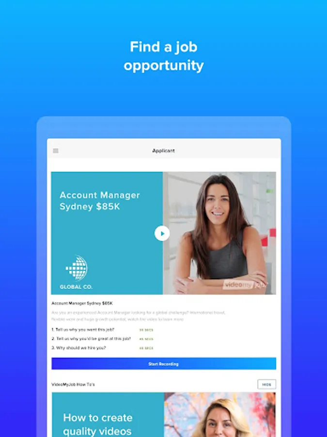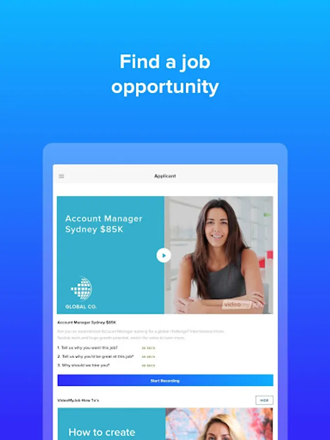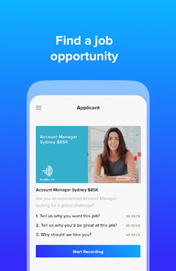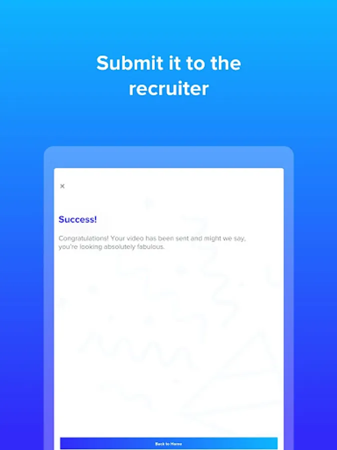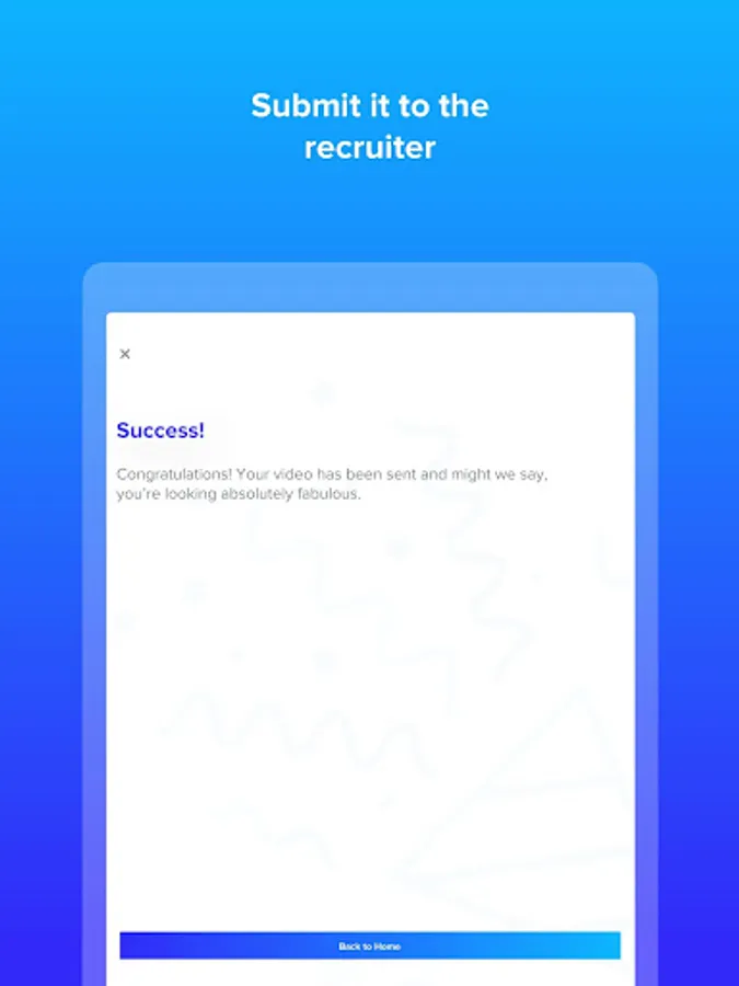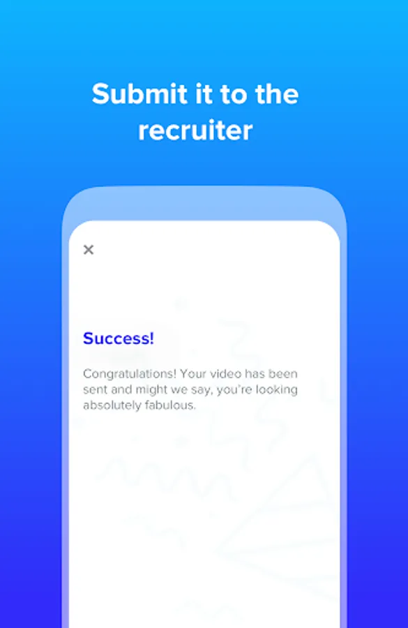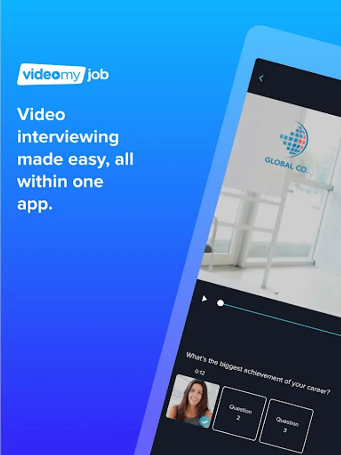 Video interviewing made easy. Use your unique code to start answering questions tailored for you and then use the video recording system to send your answers quickly and easily.
