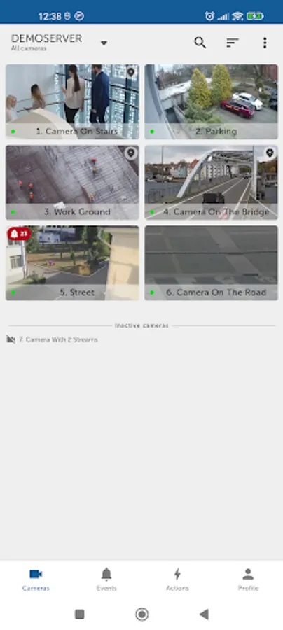 - Search and sort cameras.