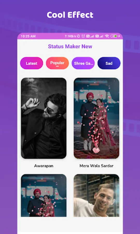 โ As a cool photo video status maker, Video Status Maker status maker provides templates that include magical video effects such as change your face to animal, blur effect, cutout effect, love effect, mirror effect, birthday effect, magician effect and so on.