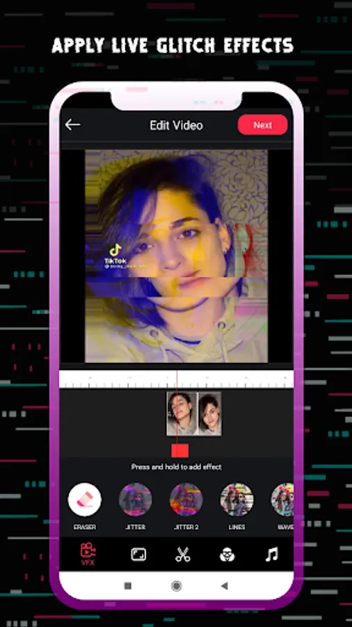 Glitch effects - video editor can easily edit videos, add music, add frames and apply different Glitch effects on videos.