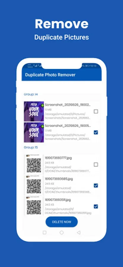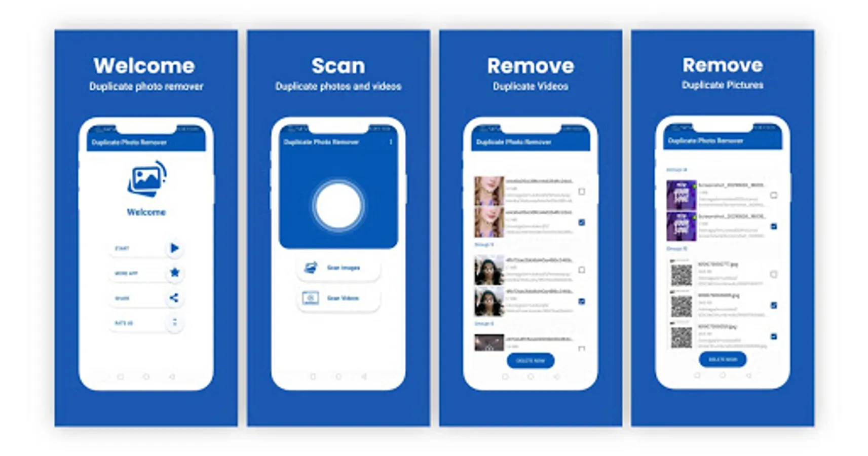 Duplicate photo remover app scans and displays duplicate or similar photos in sets. It then serves you with the option to delete the duplicate