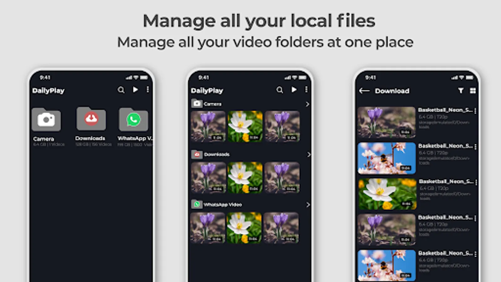 Video player supports sd card and auto-detect videos in an android device and sd card. It plays all video formats in your devices, whether you have saved them, our downloader videos from other sites, it plays all videos with high-definition.