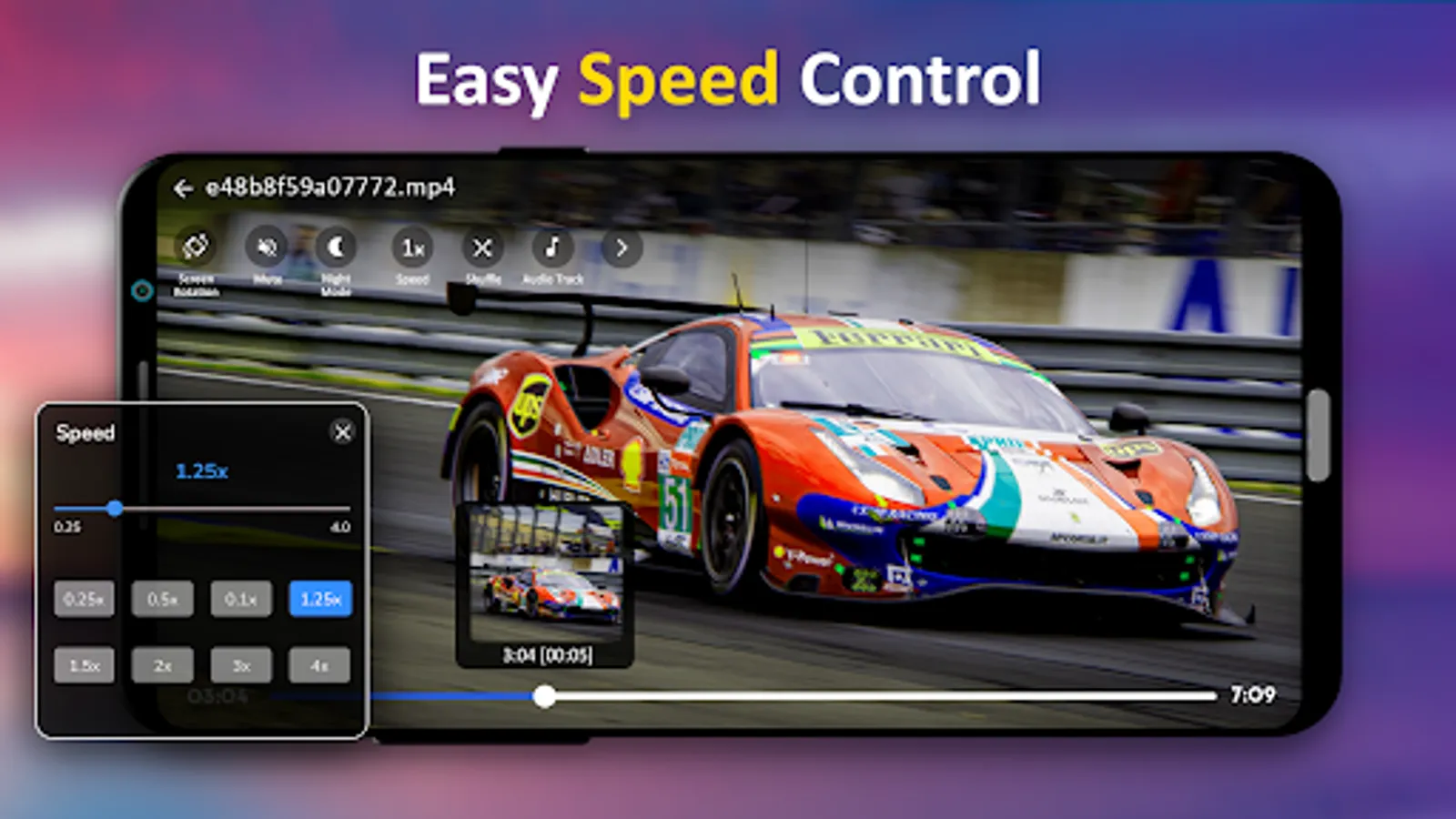 Users can quickly change the video playback speed in the range from 0.5x to 2x with this media player.