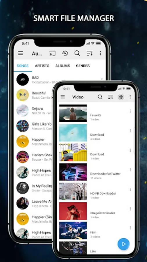 🔹 Video: mkv, wmv, avi, divx, xvid, rmvb, rm, flv, mp4, mov, 3gp, m4v, blu-ray, ts, m2ts, swf, asf, vob, h265 (hevc), webm...almost all movie file formats.