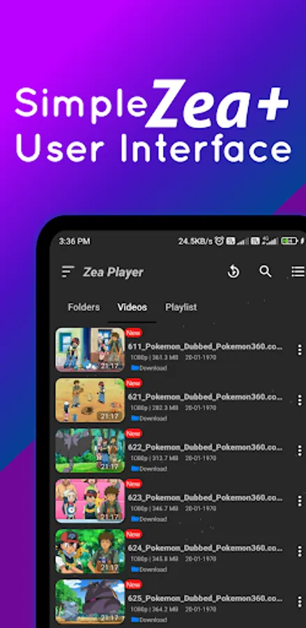 Background play, all video formats, private folder, music player, dual-track, online subtitle download, & create a playlist in the ZEA Premium app.