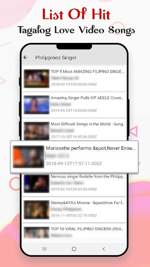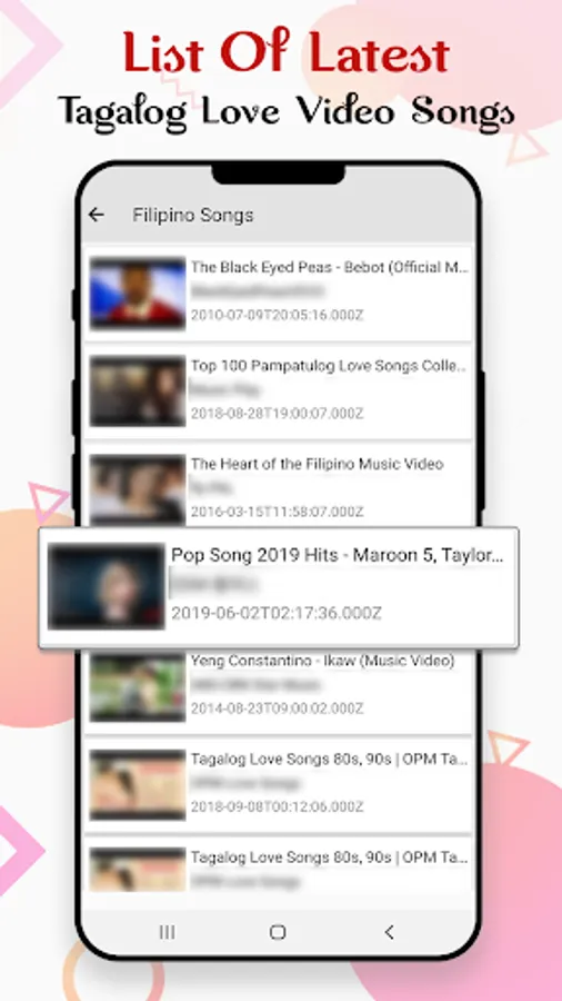 This app provided select Tagalog love songs and watch videos, Searching the best Tagalog songs best Romantic love songs of all time.Free Music Video Player New Opm Love Songs app Includes Best Tagalog & Pampatulog love song, Hugot Songs collection Playlist.Filipino music player app where you can listen new Hugot and Filipino Music, Pinoy Love songs & music video.Tagalog love song with free music video player where you can listen pinoy love songs, filipino love songs & pamatay love songs.