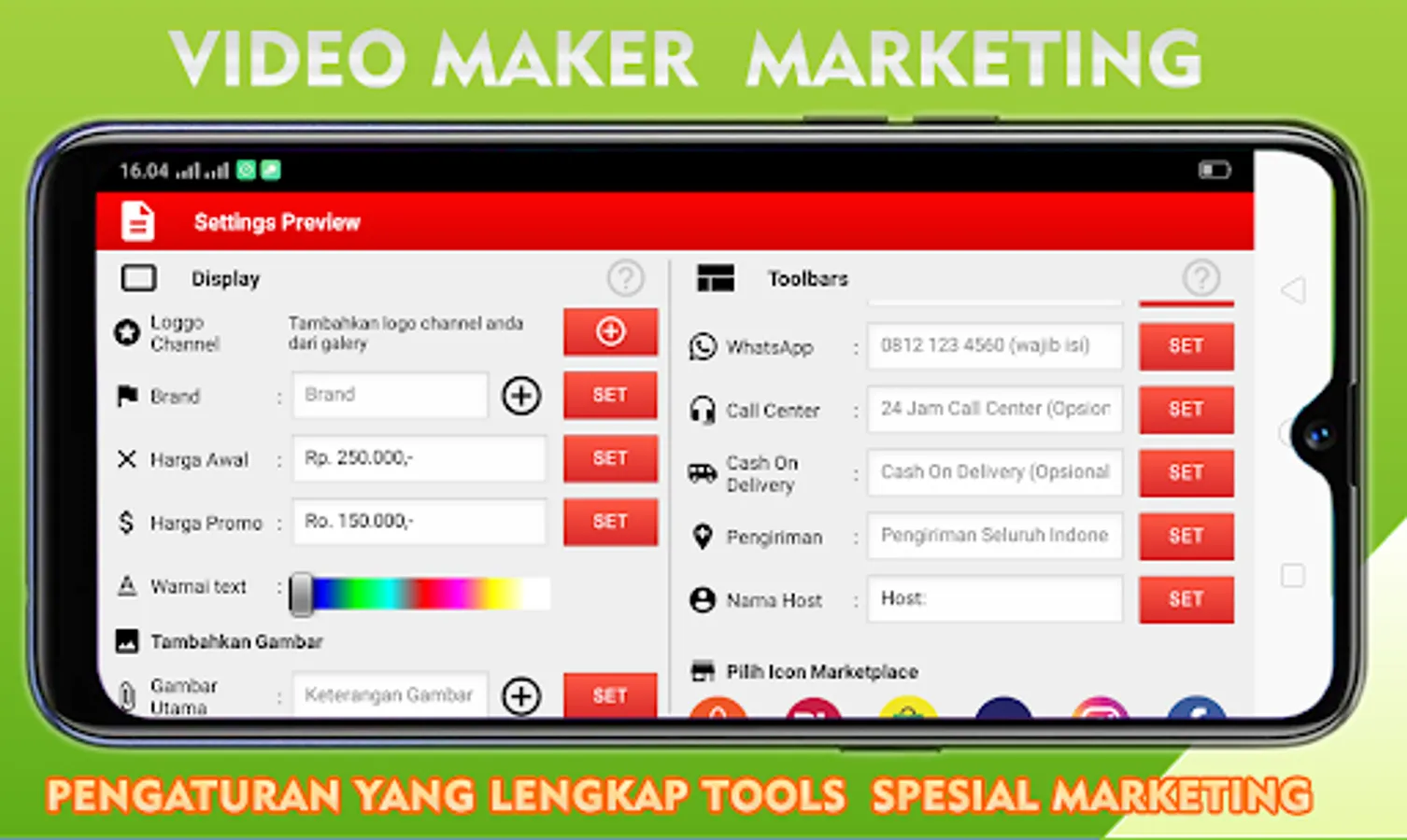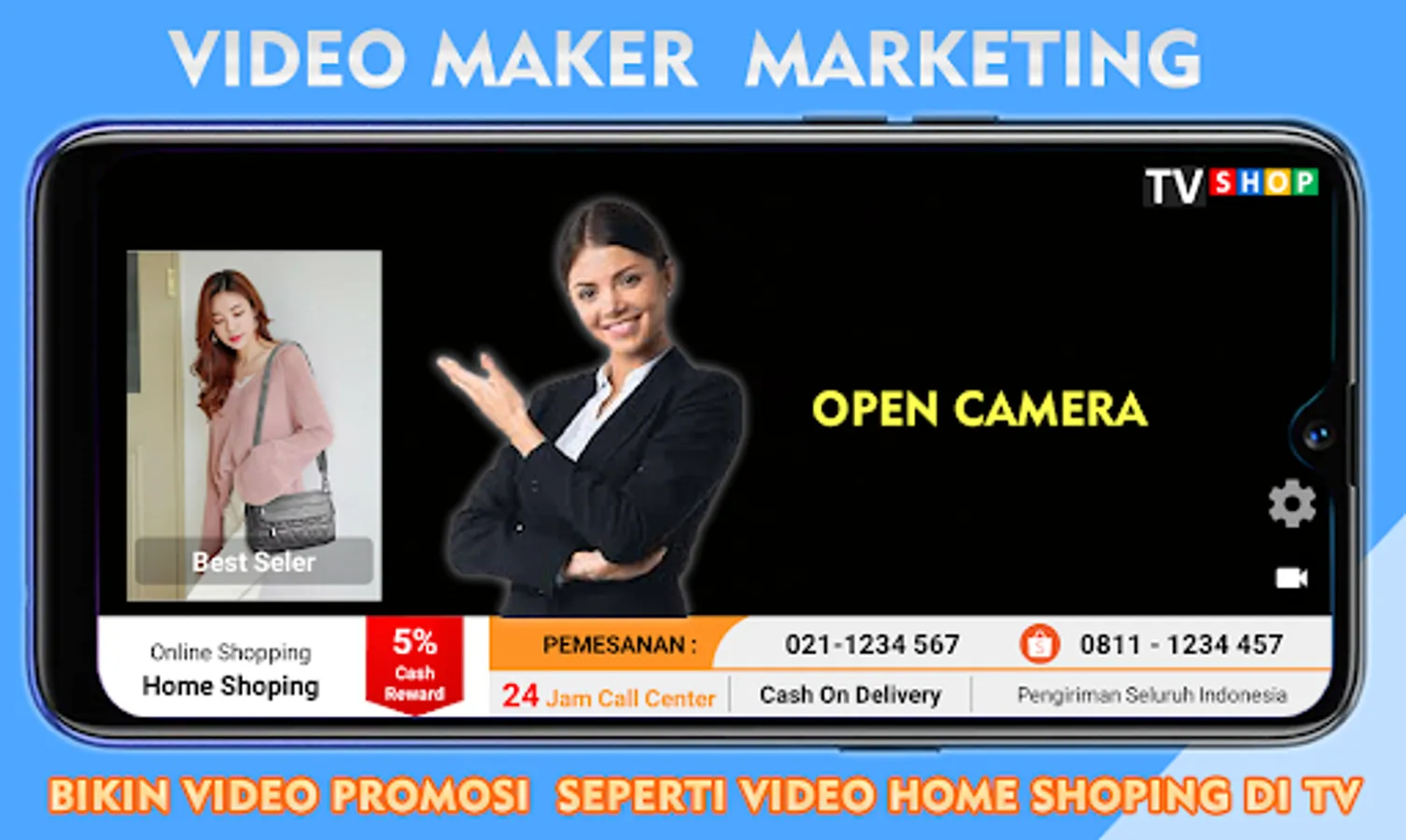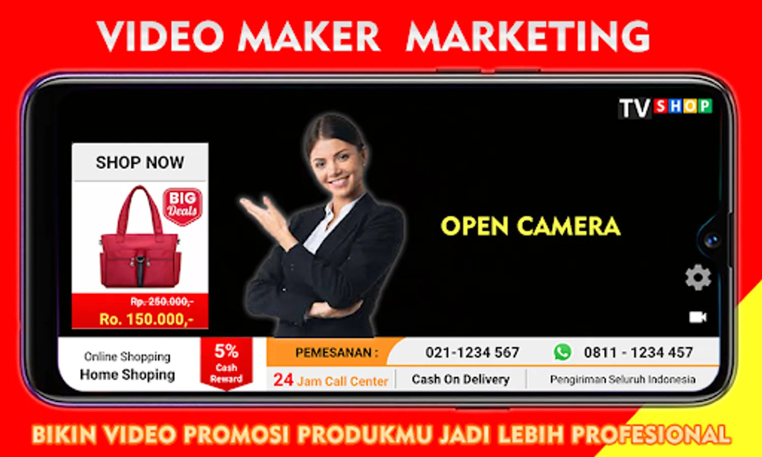 Easily and easily create video marketing / marketing video sales online for online shop sellers / sellers. develop your online shop business with marketing videos that you make professionally like home shopping video shows on television and make content for your social media trends. making promotional videos very easily with this video marketing application has the features needed for your product promotional video content.