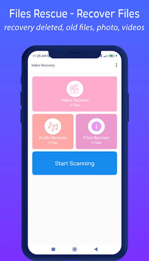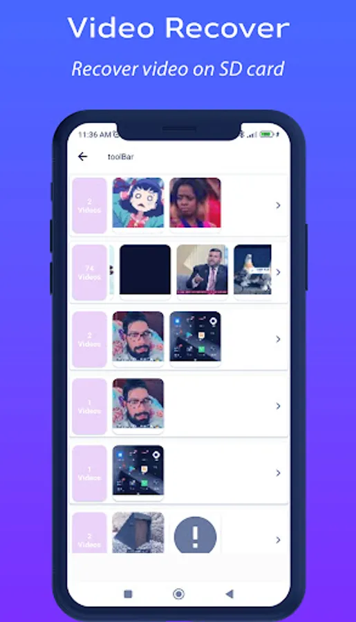 Files Rescue - Recover Files can show some non-deleted videos from your gallery. Just keep looking and you will find deleted files you are looking for.