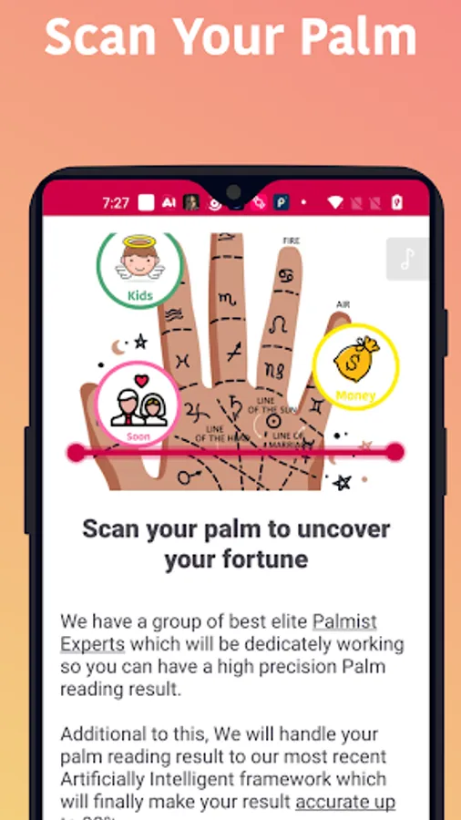 Experience the ancient art of palmistry like never before. With our Palm Reader App, simply scan your palm and watch as our cutting-edge artificially intelligent technology unveils the profound insights hidden in your hand. Our Palm Reading App expertly analyzes your palm lines, shapes, and mounts, delivering an in-depth and personalized palm reading experience.