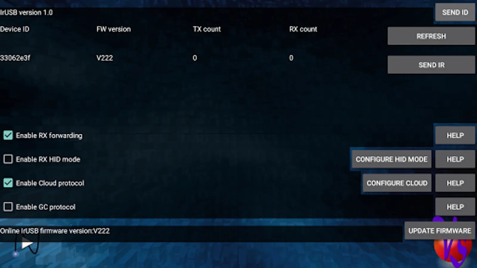 IrUSB connects directly to the USB port on your Android or Android TV device (or a connected hub). This APP acts as a driver for the hardware and allows quick and easy configuration.