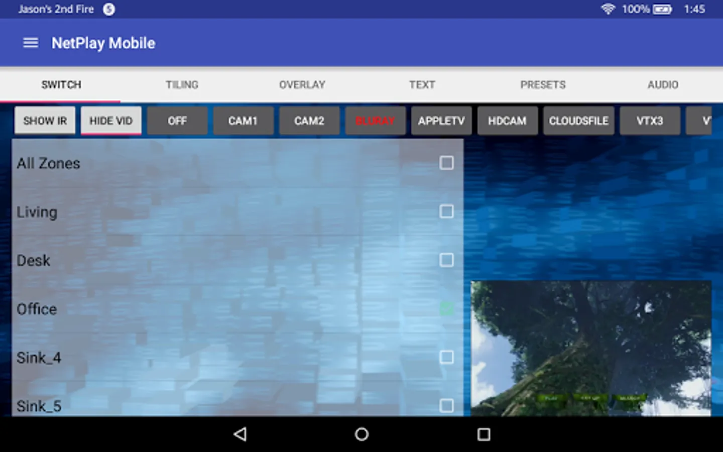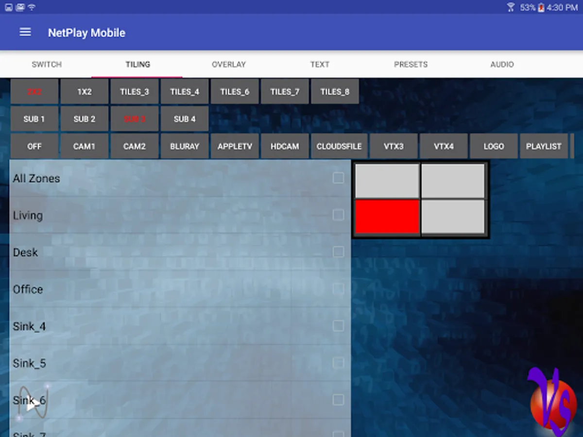 Control for video Tiling on any NetPlay endpoint via a simple graphical interface