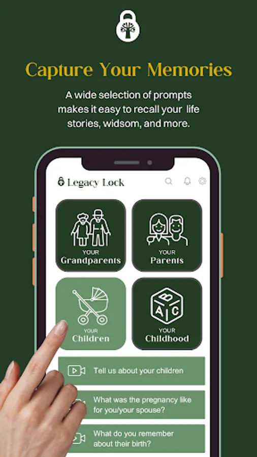 -Easily record your story. Choose from the many prompts across the important categories in your life like family, school, marriage, immigration, armed service, life wisdom and more. Say goodbye to converting old unwatched home videos and the guilt of forgetting to write down your memories.