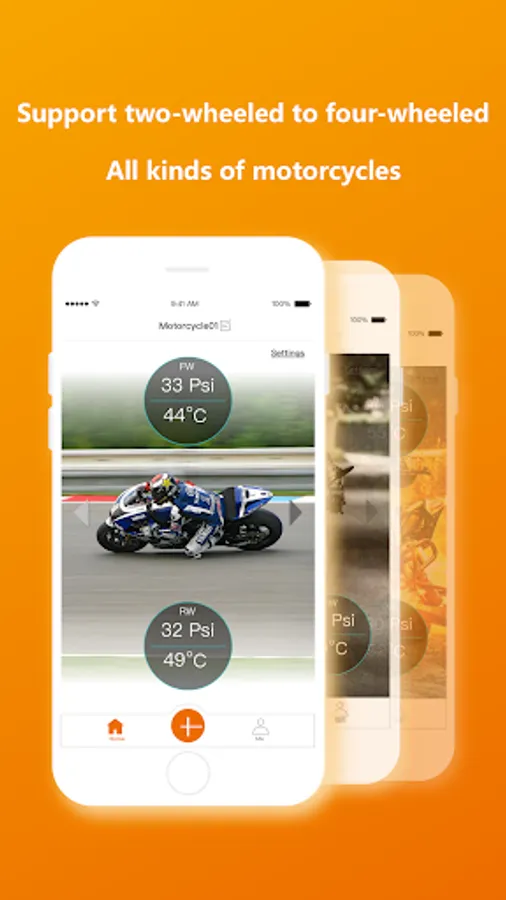 The tire pressure/temperature detector can be used to keep track of the working condition of the tires, and to reduce accidents caused by abnormal tires and ensure safety during riding.