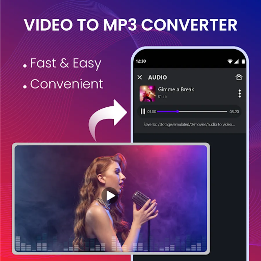 đ Video To MP3: Audio Extractor is a free and efficient application that converts video to audio, MP4 to MP3 and other formats. Select multiple videos and convert them at once, then you will quickly have high quality songs in seconds. Make it easy to get the song you want from the video now!