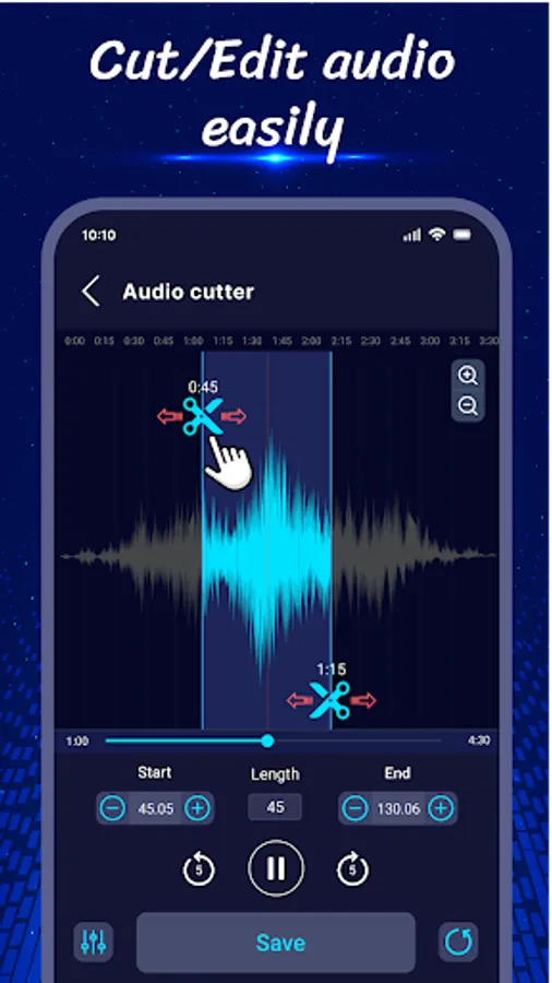 2. You can cut/edit your favorite audio clip from the extracted audio file from this mp4 to mp3 converter.