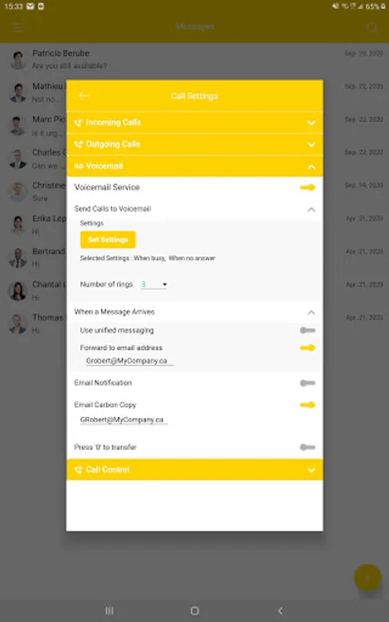 The COMMaffaires app for Android lets you enjoy all the advantages* of Videotron Business’ Cloud Communication services directly from your mobile. You get the best of both worlds: the efficiency of cloud-computing telephony and the advantage of chatting with your colleagues, wherever they may be.