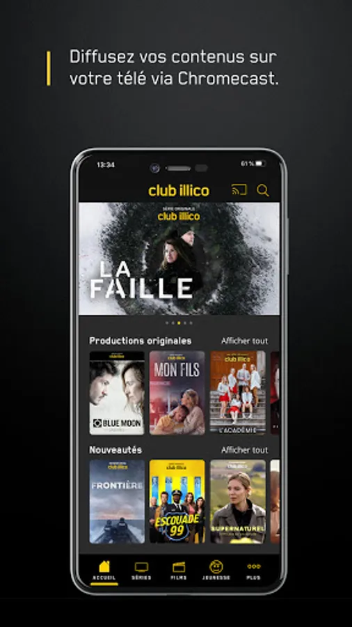 • ON YOUR TV. Stream your content to your TV via Chromecast and AirPlay or access the Club illico app on your Apple TV.