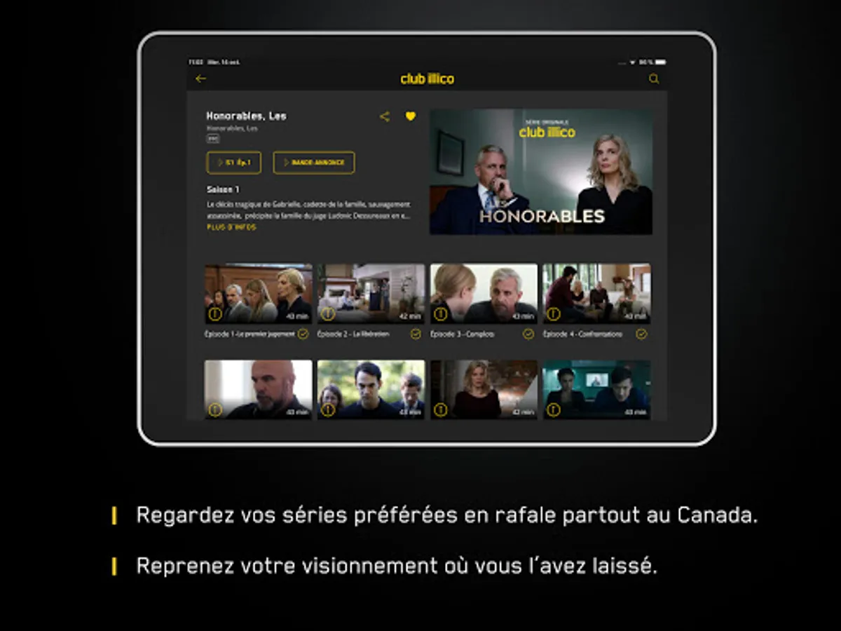 • ON ALL YOUR SCREENS. Explore the extensive Club illico catalog on your mobile, tablet and on the web.