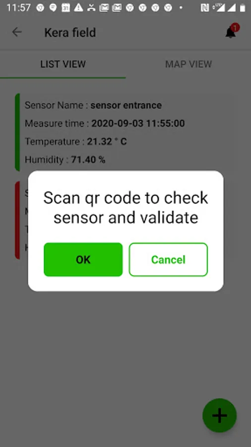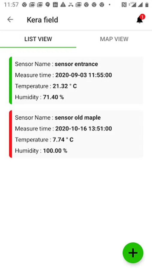 This feature is for adding and removing a new sensor, naming it and placing it on the map using the current location or chosen location. You can add a sensor by scanning the QR code that is presented on the sensor. "Map view": this is a map view of all the sensors where you can tap on each sensor to view the current temperature. "List view": is a list of sensors and live temperature data. You can click on a sensor to navigate to historic temperature data.