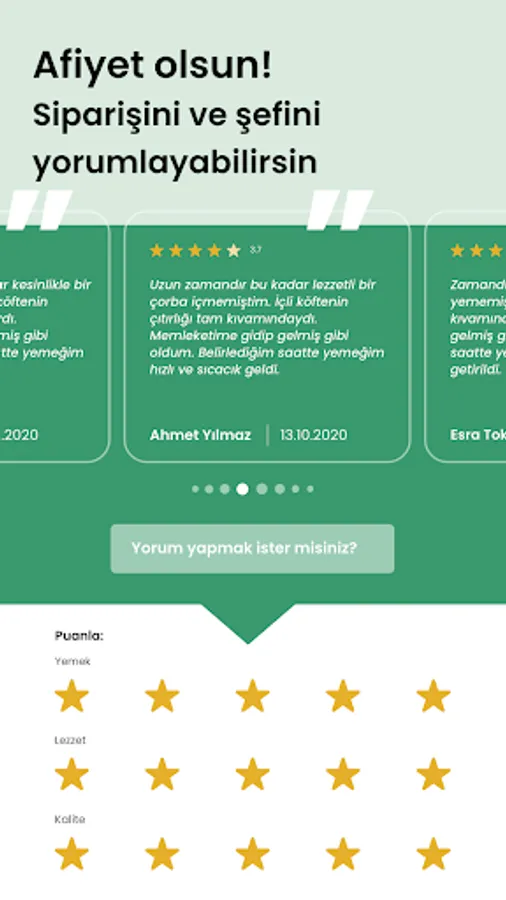- It allows you to rate and comment on the chef you order from the menu, so we allow our chefs to improve themselves at all times.